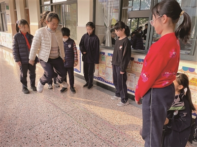 该校相关负责人介绍,为重现课间十分钟活力,小学部体育组老师们集思广益,利用走廊空间,将知识与游戏相结合,设置了“迷你跑道”“数字跳格”“古诗舒尔特”等游戏区域。记者发现,除公共游戏区域外,在教室中,也有班级组织编花绳,不仅能编织出无限创意,还能提升专注力;“运动小达人”活动,则利用教室空间开展一分钟仰卧起坐、平板支撑和俯卧撑挑战。