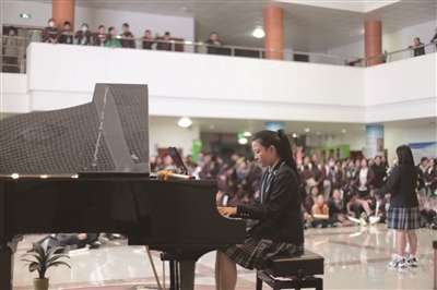这边听北塘河小学飘出京腔流韵,那么在另一所学校则是琴声悠扬。每周五下午,在结束一天的课程后,杭州市长河中学大厅内,时不时传来动人的歌声、激扬的旋律,一场独特的晚间音乐会正在进行中。