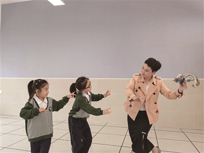 在她的带领下,唱京剧、吟曲调,北塘河小学的一年级小朋友已是演绎得“有滋有味”。
