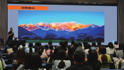 课上,张力从自身经历、摄影创作的美感表现、艺术的通感、网红作品如何产生四个方面分享创作技巧,比如“晚上能拍出蓝调色彩的照片,云雾让画面更有层次感”,再比如“早起的光柔和,能拍出丁达尔现象”,以及“可以尝试框架式构图,赋予照片更大的视觉冲击”等。