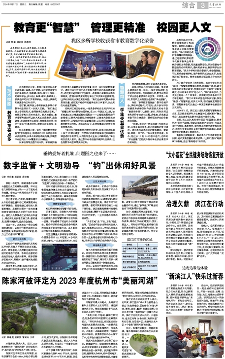 如今,沿着河边散步、观碧波荡漾,看水清岸绿已经成为滨江众多居民的日常,一幅“愿进入、能欣赏、可逗留”的滨水画卷正徐徐展开。